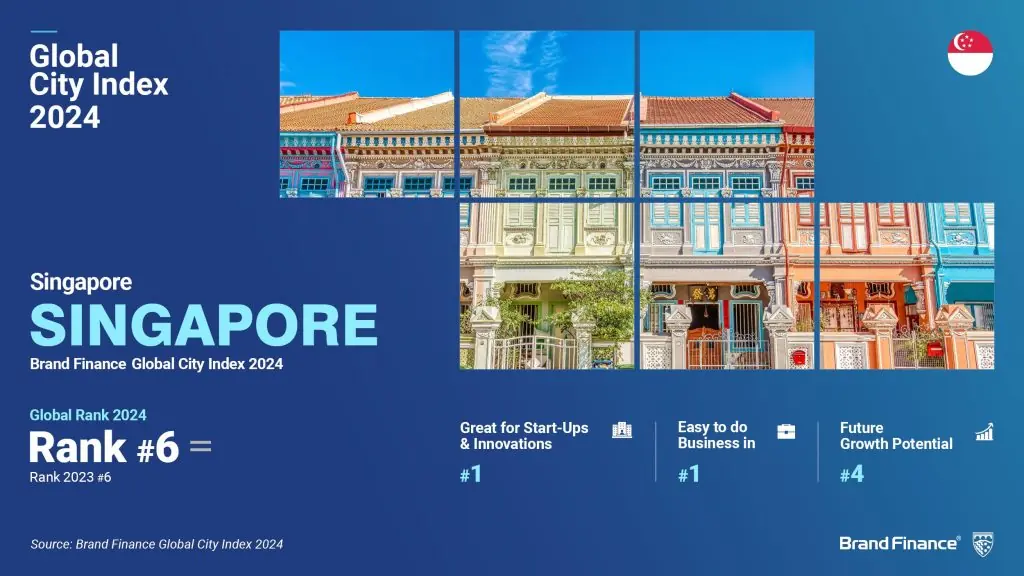 2024年11月26日,新加坡 —— 根据 Brand Finance 全球城市指数 的最新排名,新加坡在今年的全球城市品牌中表现突出,成为东盟地区的最高排名城市,并在全球榜单中位列第六。这一排名基于对来自20个国家的15,000名受访者的调查,深入剖析了全球前100个城市在商业投资、文化遗产等方面的综合表现。